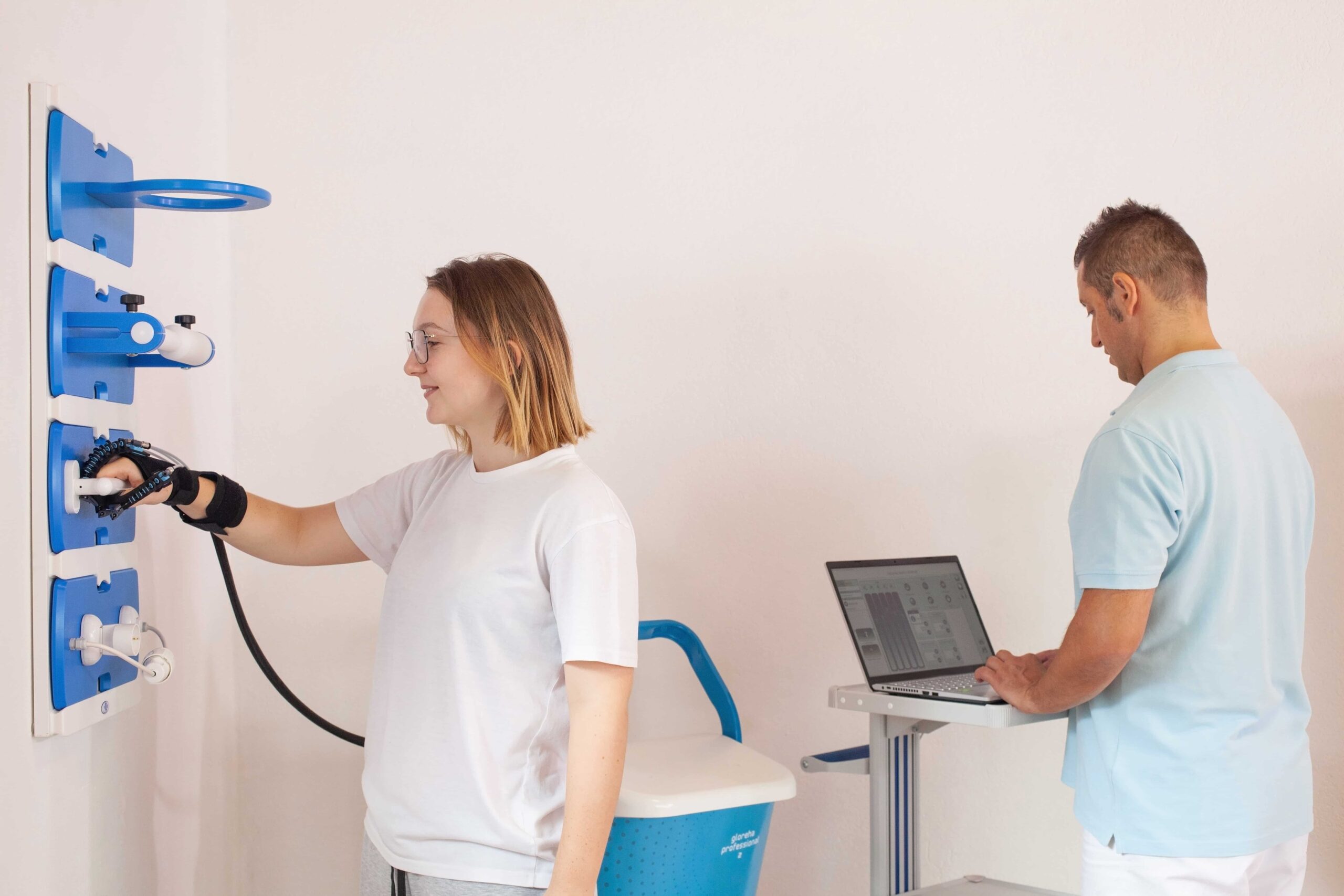 The patient is not constrained to a predefined position: wrist and arm can be moved freely by the patient during therapy.